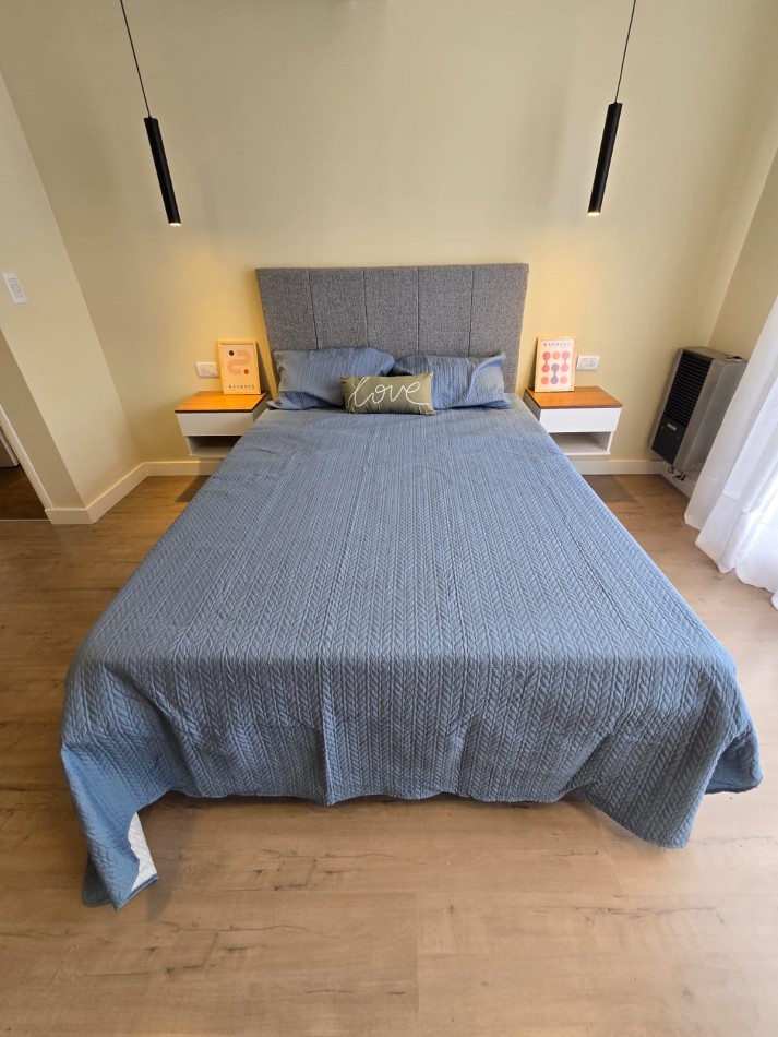 En venta departamento 2 ambientes reciclado, cañerias y desagues, instalacion de gas nueva. Living comedor, cocina semi integrada, equipada con cocina, heladera, Spar, lavarropas, termotanque. Dormitosio con Tiro balanceado. Baño completo. Se entrega equipado como se ve en las fotos, con luminarias, mobiliario, cortinados y artefactos. Hermoso balcon corrido. Escribania designada.