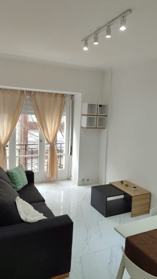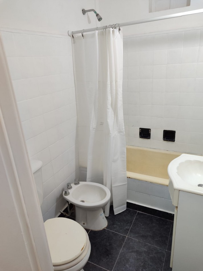 2 ambiente a la calle con balcón francés. Living a la calle. Amplio dormitorio al contrafrente con placard. Cocina separada a la calle con ventilación natural y espacio para lavarropas. Baño completo con bañera. Amoblado y parcialmente reciclado. Escribania designada.