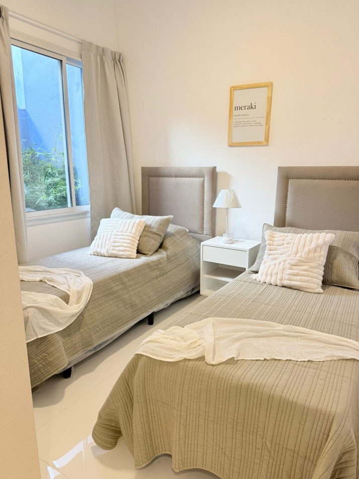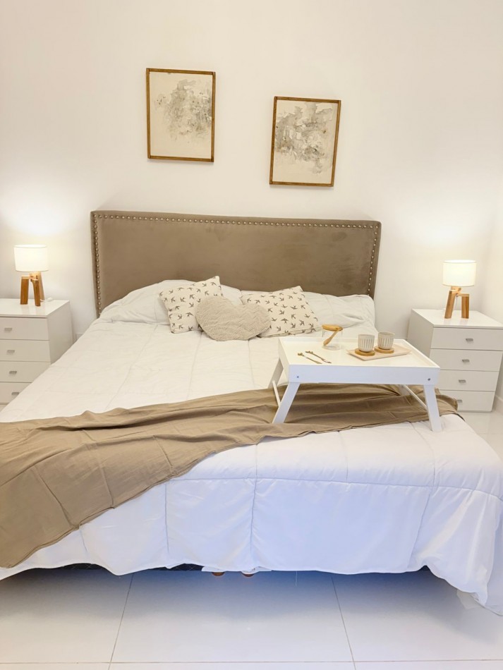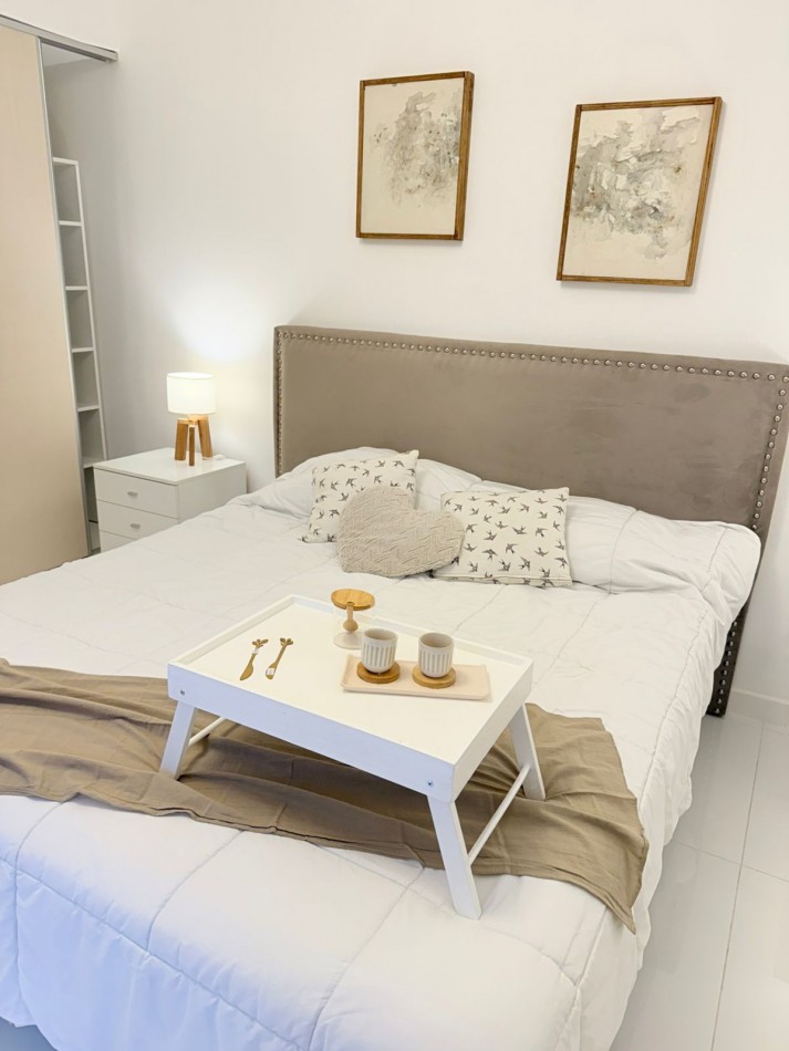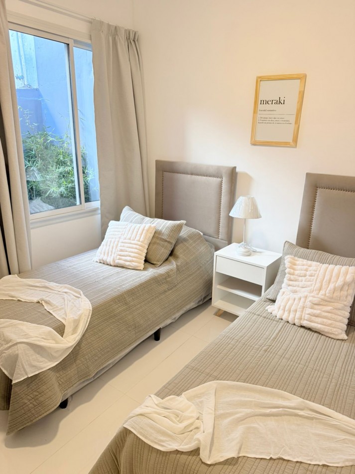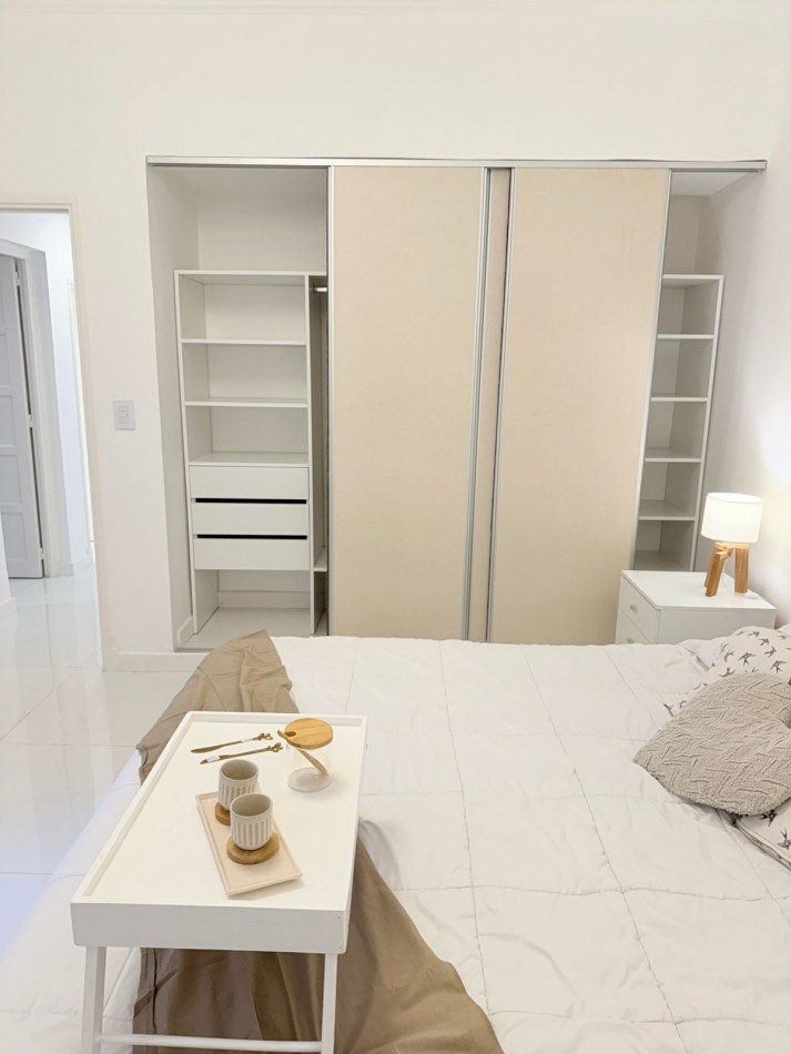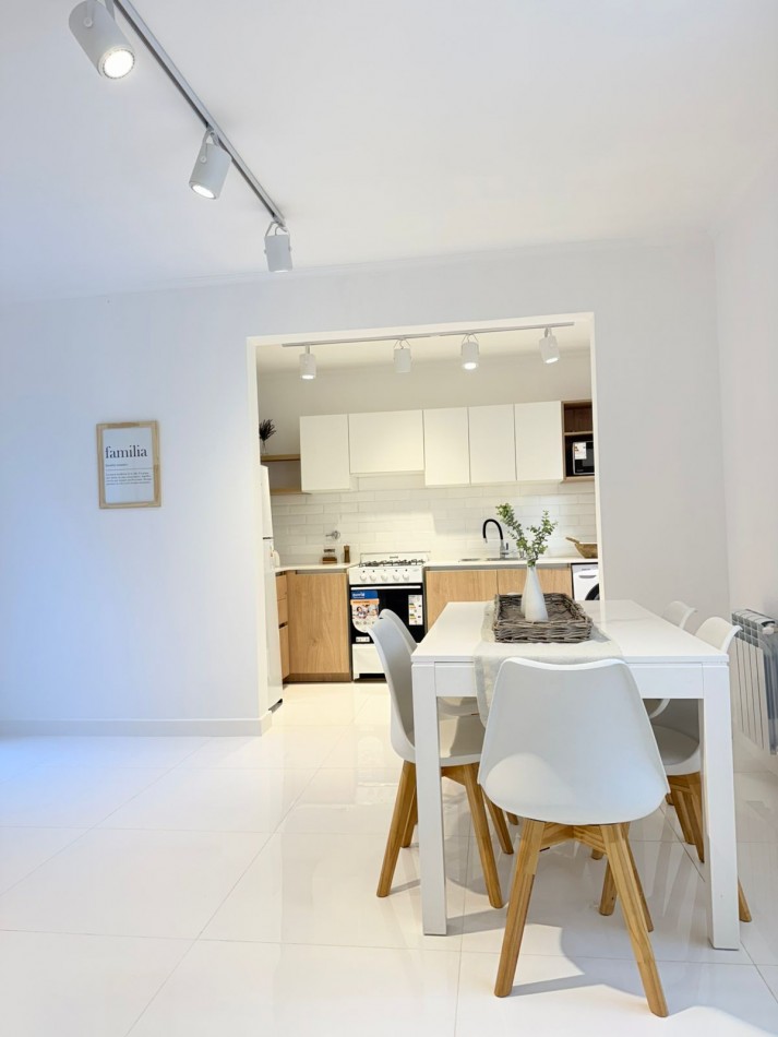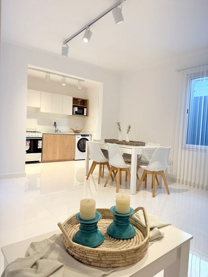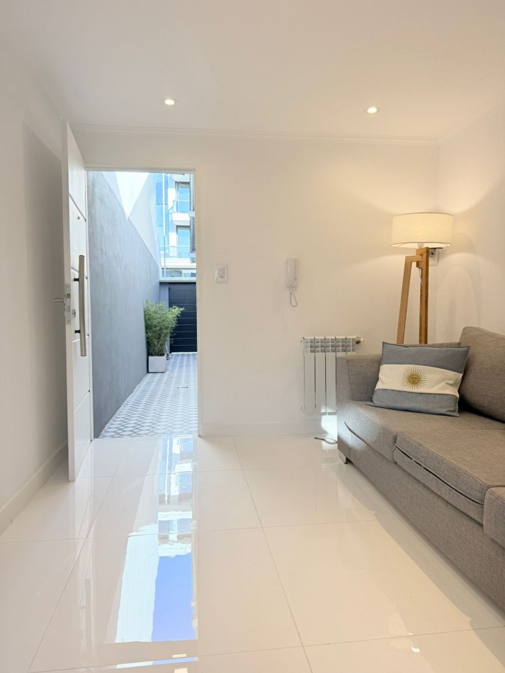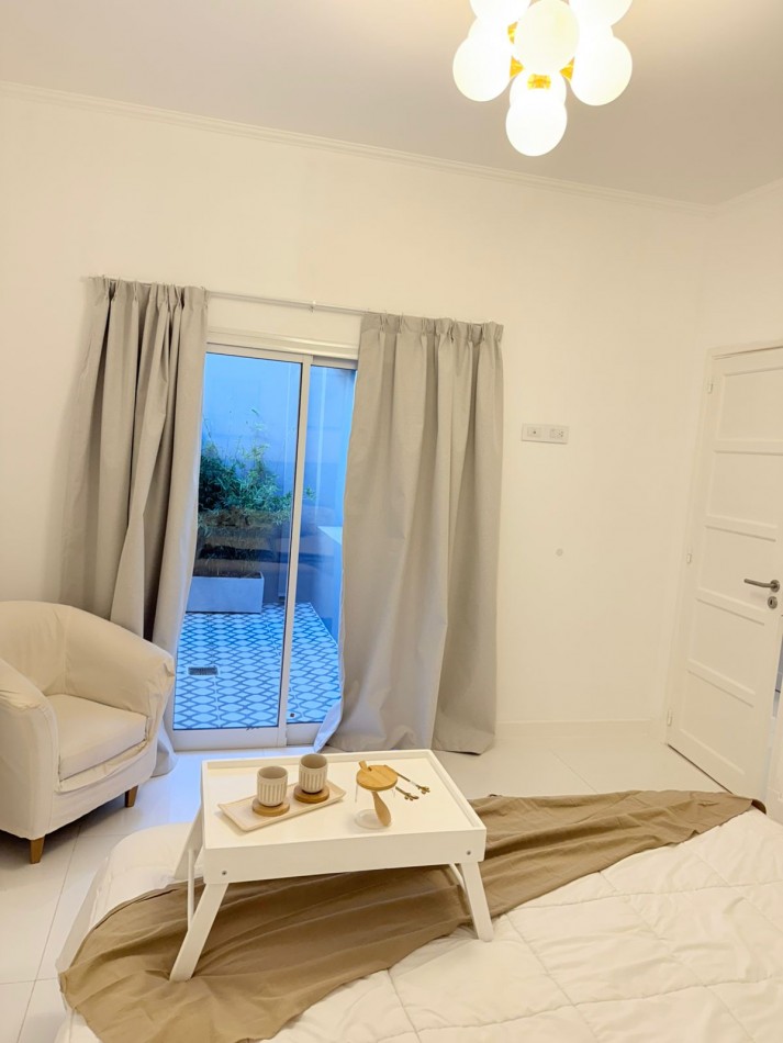 PH sin gastos al fondo por pasillo privado con entrada individual. La Rioja casi Primera Junta. A una cuadra del IAE. Chauvin. 3 ambientes con dependencia de servicio, 2 baños y 3 patios propios. Reciclado completamente. Al ingresar luminoso y cómodo living, luego se accede al comedor luminoso y con ventilación cruzada. TV de 43”. Sillón y mesa ratona y mesa extensible con 6 sillas. Cocina amplia con mucho lugar de trabajo y guardado. Acceso a dos patios (Uno de ellos con parrilla). Equipada con lavarropas. Dependencia de servicio también puede ser usada como escritorio o despensa. Un toilette de recepción con ventilación natural. Baño completo con ventilación natural. Habitación con dos camas, respaldos, mesa de luz y placard a medida. Habitación principal con Sommier Cannon exclusive de 1.80 mt., con respaldo, mesitas de luz, espejo, placard a medida, sillón de apoyo y salida al patio mediante puerta balcón. Se entrega cómo se ve en las fotos, con muebles, electrodomésticos y decoración. Sin expensas. Solo dos unidades en el terreno. Gas recién instalado con medidor individual. Calefacción por radiadores en todos sus ambientes. Todas las aberturas son de aluminio con DVH. Todos los electrodomésticos son a estrenar